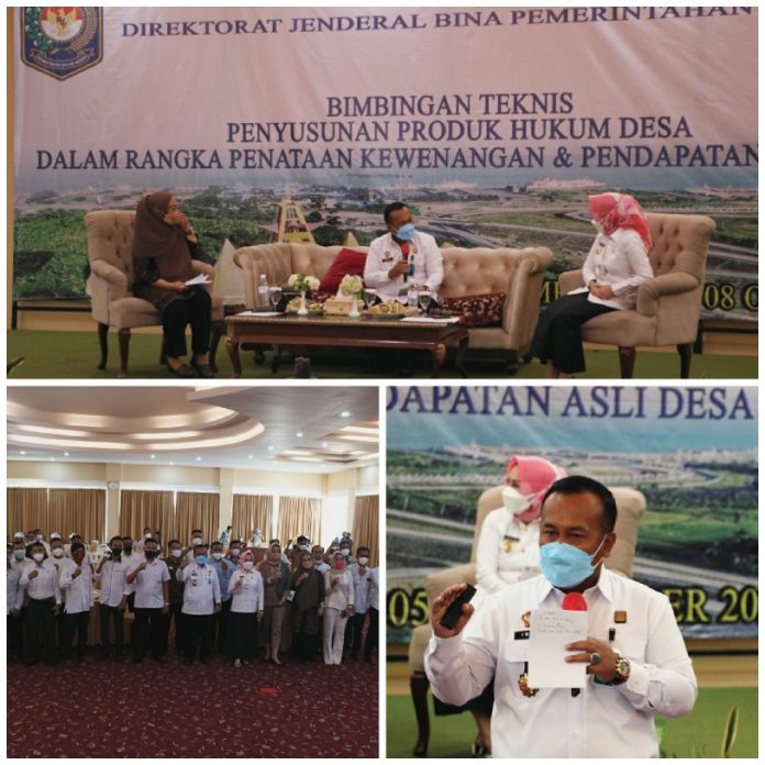 Lampung (HO) – Direktorat Penataan dan Administrasi Pemerintah Desa Kementerian Dalam Negeri menyelenggarakan Kegiatan Bimbingan Teknis Penyusunan Produk Hukum Desa dalam rangka Penataan Kewenangan Desa dan Pendapatan Asli Desa untuk memberikan pemahaman kepada Aparatur Pemerintah Desa mengenai proses penyusunan Produk Hukum Desa.