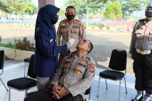 Pesawaran (HO) – Guna memberikan rasa aman dan tetap sehat jauh dari Covid-19 Si Dokkes Polres Pesawaran Polda Lampung melaksanakan Tes Swab Antigen bagi personil Polres Pesawaran, Rabu (20/07/22) Pukul 08.30 Wib Setelah selesai dari pelaksanaan Apel pagi.