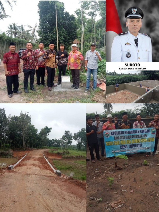 Suroto Kepala Desa Trimulyo membenarkan, pihaknya telah melaksanakan beberapa jenis kegiatan. Mulai dari infrastruktur maupun ketahanan pangan Badan usaha milik desa (Bumdes), serta memberikan dua unit bantuan bedah rumah kepada masyarakat yang tidak mampu memanfaatkan anggaran dana desa (DD) tahun anggaran 2025.