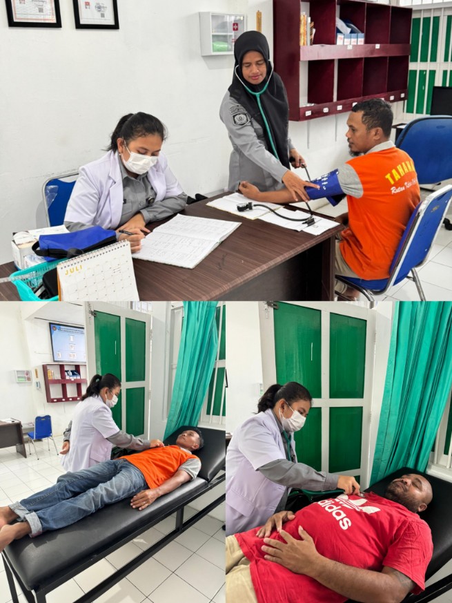 Pemeriksaan dilakukan oleh petugas kesehatan Rutan Ambon yang terdiri dari dokter dan perawat. Mereka memantau kondisi fisik warga binaan, mengevaluasi keluhan kesehatan, serta memberikan penanganan awal bagi yang menunjukkan gejala tertentu. Selain itu, Rutan juga menekankan pentingnya menjaga kebersihan kamar hunian dan sanitasi lingkungan.