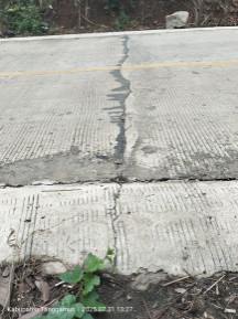 Retak di sana sini tampak jelas dan dikhawatirkan akan membuat jalan kembali rusak dalam tempo yang tidak lama.