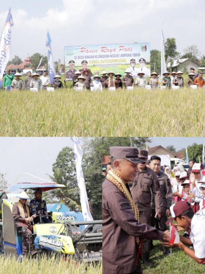 Lampung (HO) – Kepala Kejaksaan Tinggi Lampung Danang Suryo Wibowo, SH., LLM, pada hari Kamis tanggal 07 Agustus 2025, Pukul 10.00 WIB melaksanakan kegiatan Panen Raya Padi bersama Petani Mitra Adhyaksa binaan Kajari Lampung Timur dalam rangka mendukung Program Ketahanan Pangan Nasional sebagai Program Prioritas Presiden Republik Indonesia di Tahun 2025 di Desa Batang Hari Kabupaten Lampung Timur.