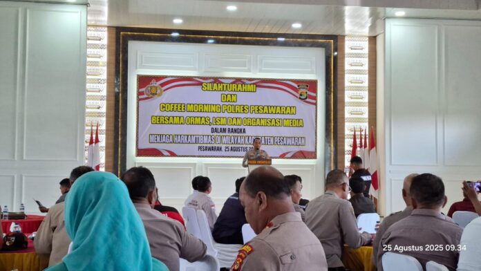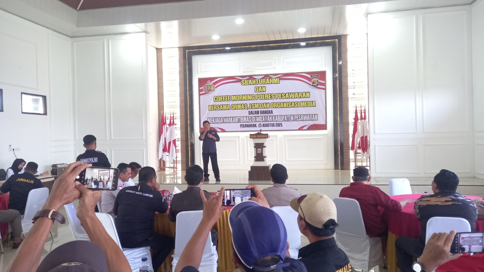 Pesawaran (HO) – Guna meningkatkan sinergitas dalam menjaga Keamanan dan ketertiban di Bumi Andan Jejama, Kapolres Pesawaran AKBP Heri Sulistyanto Nugroho, S.H, M.H, menggelar Coffe Morning bersama lembaga Media, Organisasi Masyarakat (Ormas) dan Lembaga Sosial Masyarakat (LSM) se-kabupaten setempat.