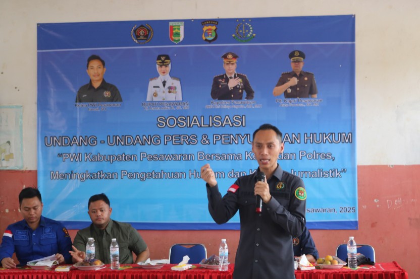 Pesawaran (HO) – Persatuan Wartawan Indonesia (PWI) Kabupaten Pesawaran Lampung, bersama Kejaksaan Negeri, Kepolisian Resort dan Dinas Pendidikan dan Kebudayaan kabupaten setempat menggelar sosialisasi Undang-Undang Nomor 40 Tahun 1999 tentang Pers, Kode Etik Jurnalistik (KEJ), serta penyuluhan hukum bagi para guru di SDN 1 Kedondong, Kamis (9/10/2025).