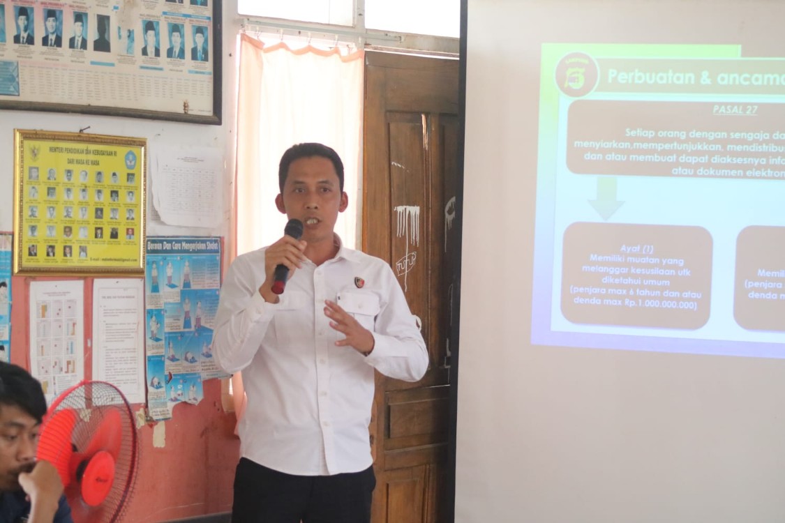 Adapun Kanit Tipidter Satreskrim Polres Pesawaran Iptu Sopandi, mewakili Kasat Reskrim Iptu Pande Putu Yoga Mahendra, turut memaparkan tentang Undang-Undang Informasi dan Transaksi Elektronik (UU ITE) serta potensi pidana akibat penyalahgunaan media sosial.