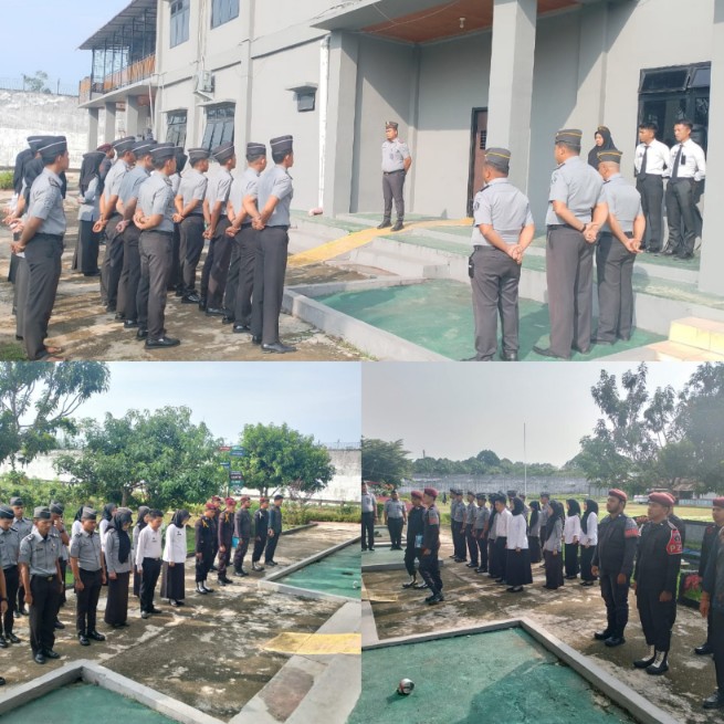 Sumatera Barat (HO) – Jajaran Lembaga Pemasyarakatan (Lapas) Kelas III Dharmasraya Sumatera Barat, melaksanakan apel rutin pagi di area dalam lapas. Kegiatan ini dipimpin langsung oleh Kepala Lapas Dharmasraya, Ferdika Canra, dan diikuti oleh seluruh pejabat struktural serta pegawai dengan penuh semangat, disiplin, dan tanggung jawab, Senin (13/10/2025),
