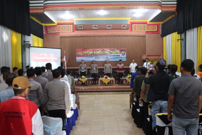 “Forum Konsultasi Publik ini merupakan ruang diskusi dan pertukaran opini secara partisipatif antara penyelenggara layanan kepolisian dan masyarakat. Dengan melibatkan masyarakat, diharapkan ada keselarasan antara harapan publik dengan kemampuan kami dalam memberikan pelayanan,” kata Wakapolres saat membacakan amanat tersebut.