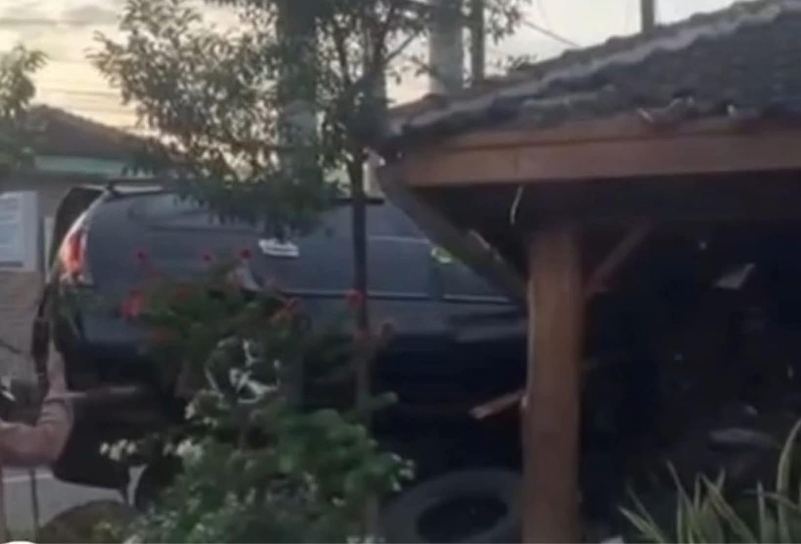 Berdasarkan keterangan karyawannya dan warga, posisi mobil melaju dengan kecepatan tinggi, sehingga menabrak gazebo usahanya.