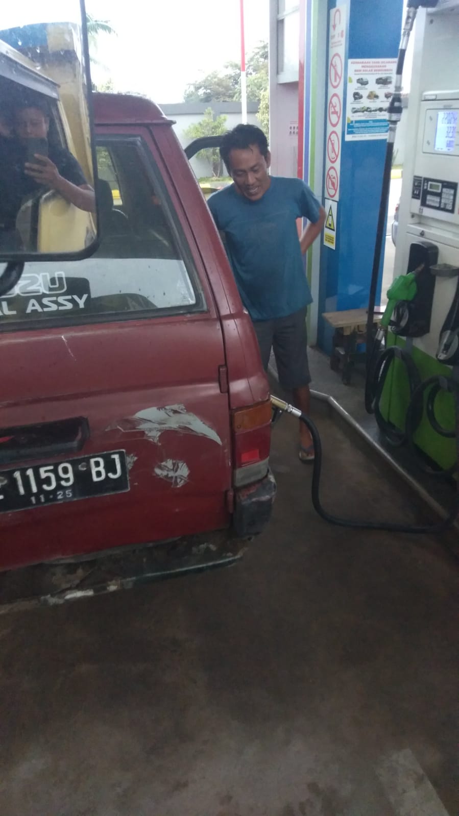 Mohon maaf coba dicek saja di lapangan biar tau kejelasannya. Iya sama, om maaf SPBU kita setiap mobil cuma bisa 1x satu hari,” ucapnya singkat.